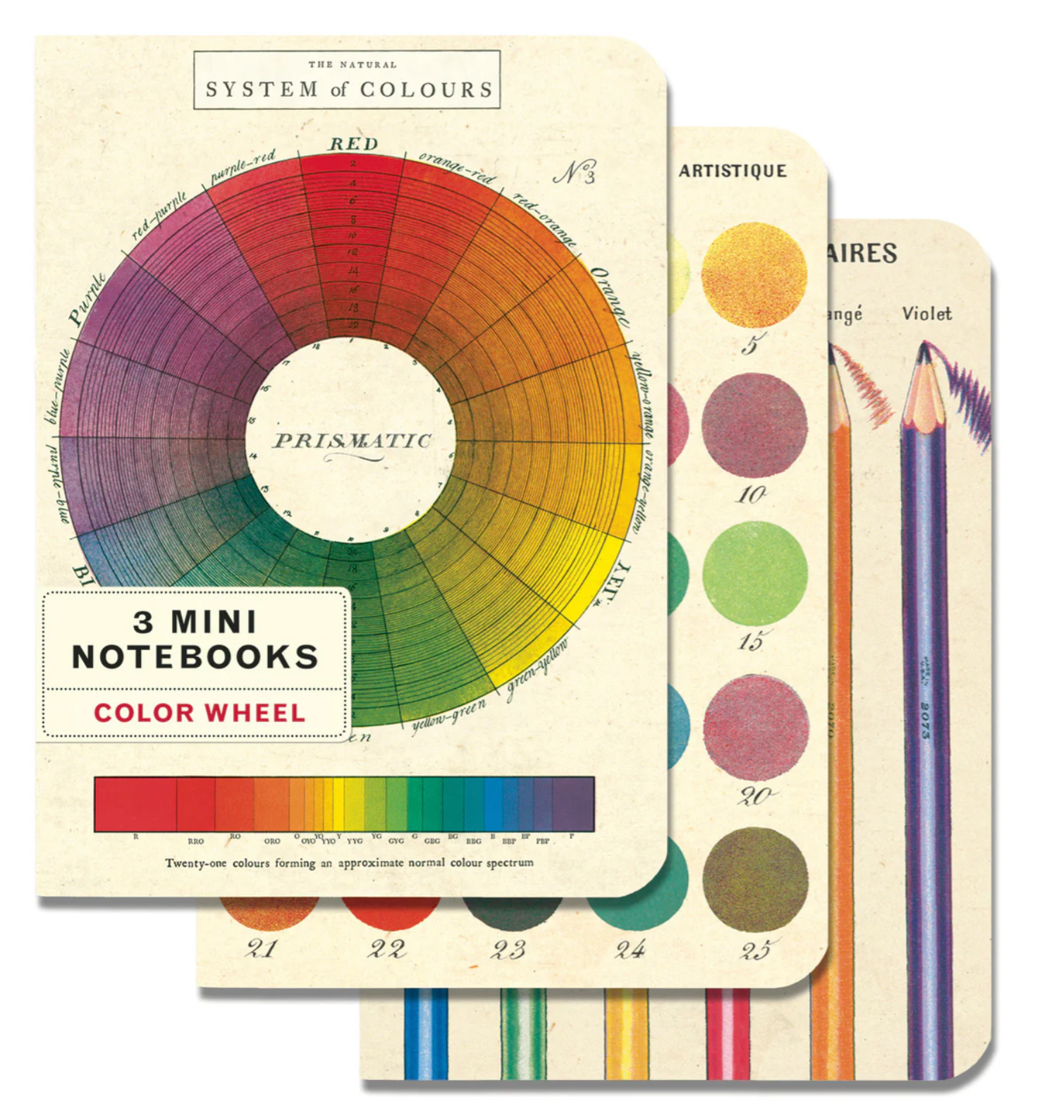 The Cavallini & Co. Color Wheel Mini Notebook Set has three high quality notebooks features reproductions of vintage illustrations, complete with a vintage color wheel or System of Colors on one of the covers. These vintage illustrations might bring back images of your art school days, or might inspire you to experiment with color once more.