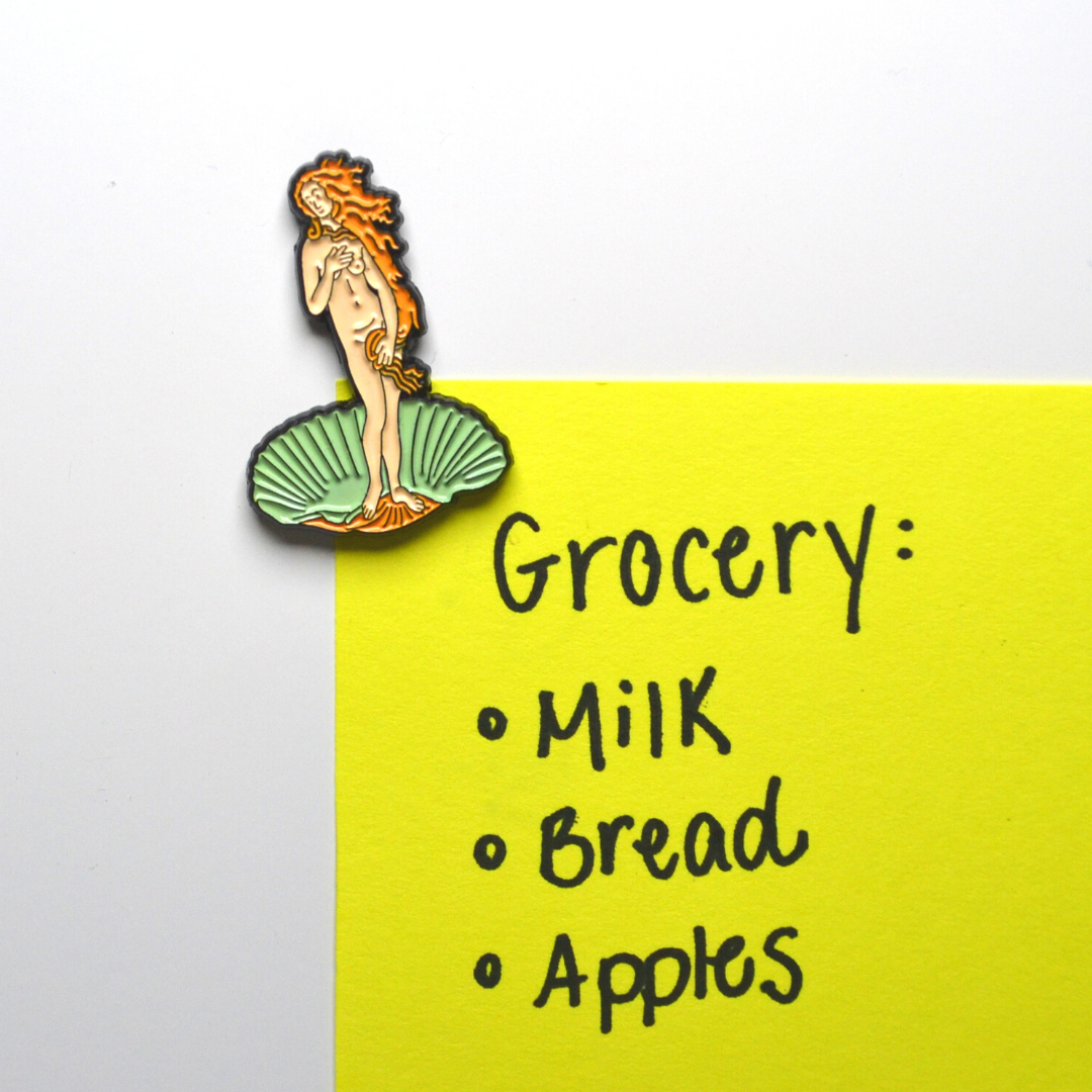 Bring a touch of Renaissance charm to your refrigerator with this delightful enamel magnet inspired by Botticelli's iconic masterpiece. Featuring the graceful figure of Venus emerging from the sea, this small work of art celebrates one of history's most beloved paintings in a fun, functional way. Perfect for art lovers, museum enthusiasts, and anyone who appreciates a dash of classical beauty in their everyday spaces. A playful nod to the Old Masters that sparks conversation and adds personality to any magnetic surface.